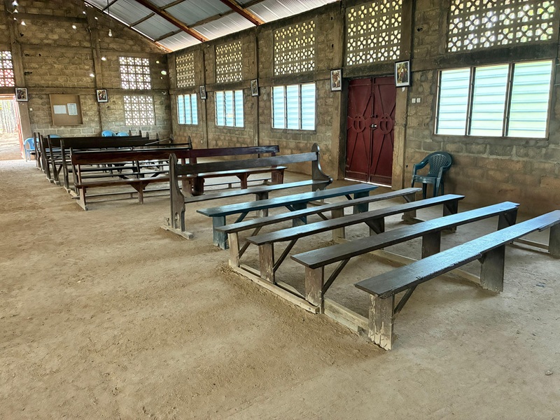 P. Clauvis MATUNGULU, SMA, vicaire de la paroisse Saint Jean-Paul II d’Agogome, demande un soutien pour équiper la nouvelle église, construite par la communauté paroissiale, en bancs pour environ 300 fidèles.